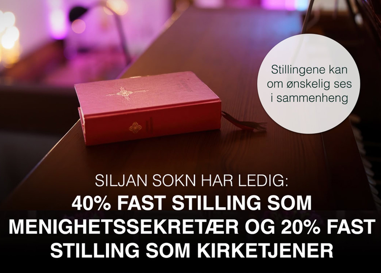 Siljan kirkelige fellesråd søker menighetssekretær i 40% fast stilling, med tiltredelse medio mai 2026.
